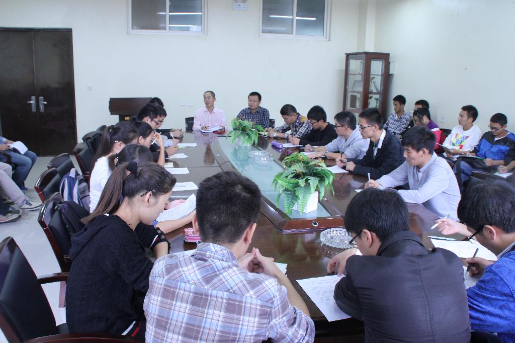 为践行群众路线教育实践活动,了解学生对学校、学院及教师的意见和建议。材化学院于2013年10月14日中午1点在工3楼408会议室组织召开主要学生代表座谈会,会议由材化学院分党委副书记张治宏老师主持,11、12级42名学生代表参加。