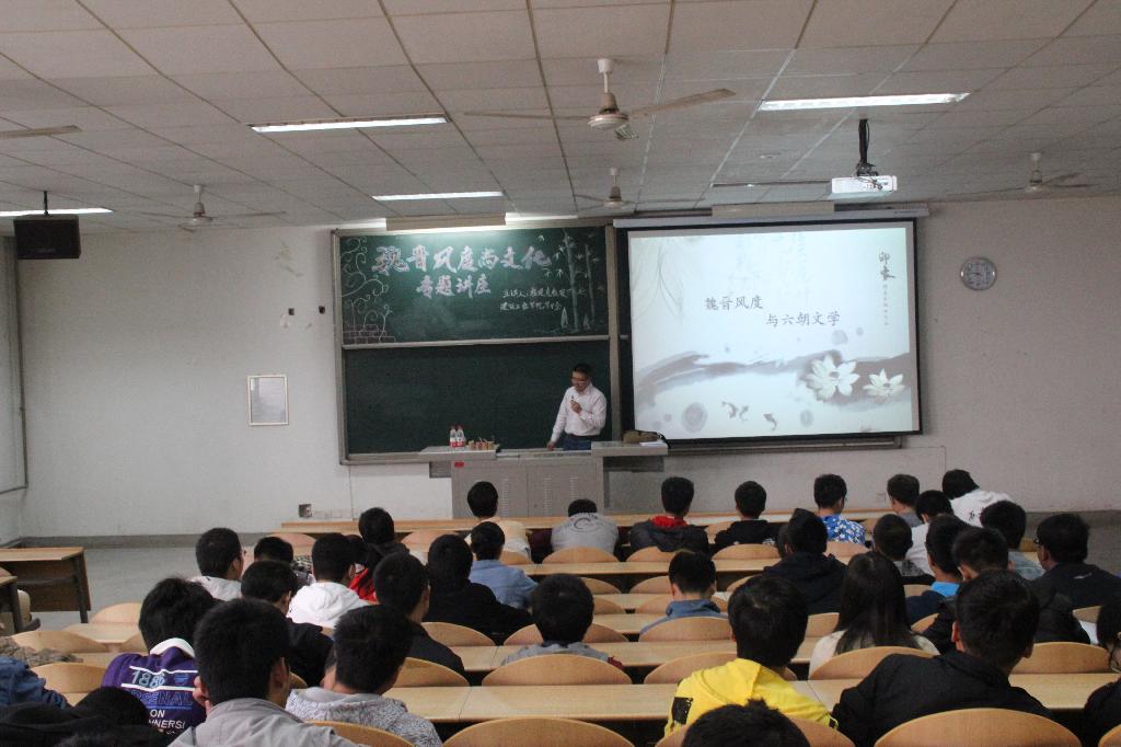 讲座在辅导员徐亦文的主持下正式开始。程教授通过对魏晋风度与文化生动活泼,别开生面的讲解,引据到我们现代大学生如何发扬和继承这种文化与风度。讲台上,程教授讲的精彩飞扬,台下的同学们也听得异常认真。各位同学了解到魏晋王朝时期的知识分子中有那种不同于传统、不同于流俗、不同于任何历史时期的言谈举止和文化。短短一个半小时很快就过去了,同学们听得意犹未尽。最后徐亦文老师对本次讲座做了总结。