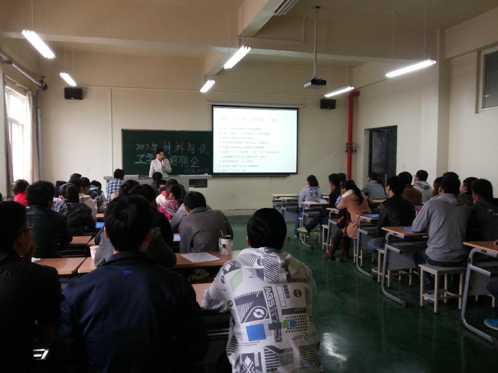材化学院大四辅导员张瑞红和党诗瑶两位老师协助招聘单位对来自材化、电信等学院的2014届毕业生进行宣讲、笔试与面试,最终招聘毕业生30余人。