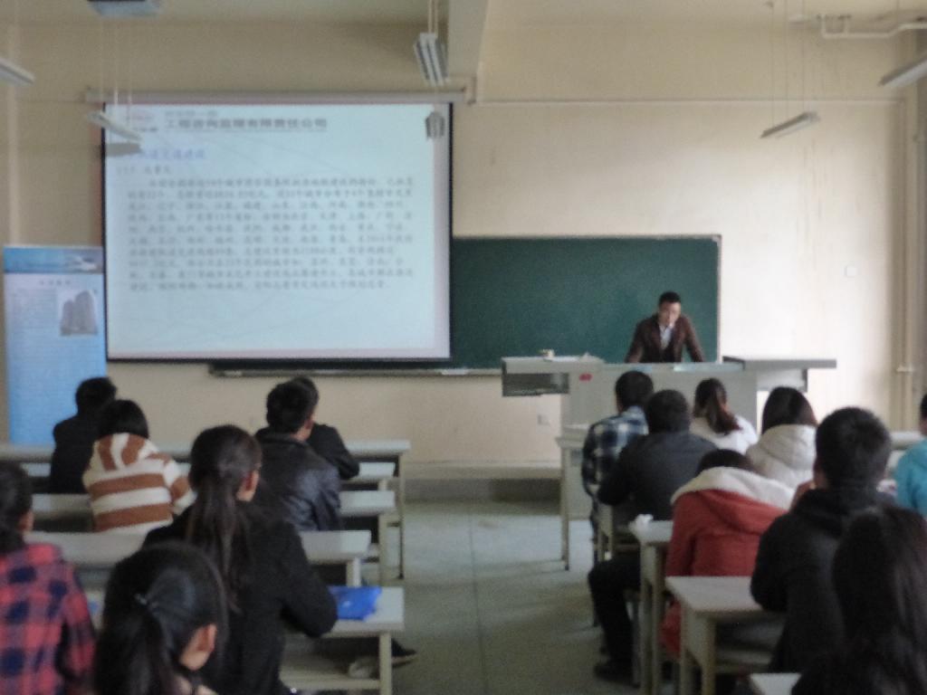 西安铁一院工程咨询监理有限责任公司是国内大型工程咨询监理企业之一,陕西第一家综合监理资质企业,是中国建设监理协会、陕西省建设监理协会、中国铁道工程建设协会会员,是陕西省建设监理协会、陕西省项目管理委员会常务理事单位。首先,铁一院的负责人以视频的方式向同学们展示了公司的概况,企业文化、荣誉以及公司选拔培养计划,让同学们对铁一院有一个更深入的了解;其次,学生就关心的待遇福利、个人发展前景、档案户口等问题进行了详细咨询;最后,铁一院负责人接收学生的简历并进入面试环节。整个招聘过程井然有序。面试结束后,更有不少同学们留下和公司负责人交流面试经验和心得体会。
