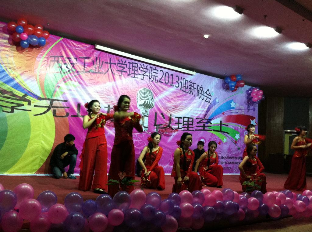 热情如火的开场舞拉开了整场晚会的序幕。在四位主持介绍下,理学院院长为晚会致开幕词。紧接着表演如火如荼的开始了,演员们一个个激情参与,观众们兴趣勃勃,喝彩呐喊声一片,小品《考试作弊》为此次迎新节目起了良好的带头作用,演员们淋漓尽致的表现着现在大学生的考试现状,幽默的表演却能发人深思、《残酷月光》悦耳的歌声带动全场、旋律优美的萨克斯以及乐器合奏带给人舒服感觉、高亢激昂的《将进酒》、性感火辣的现代舞、中场环节由学生会带来精心编排的《三国大乱斗》,由现场穿越到了古代,生动形象的表演引来台下一阵阵掌声、激情澎湃的歌曲串烧轰动全场、玄幻神奇的魔术引爆全场的热情、在老师轻松幽默的三句半中,老师学生打成一片、动感的爵士舞也是晚会的一道美丽的画面、伴随着研究生们《心愿》的合唱,院领导和所有演员共同走上舞台为此次迎新画了一个完美到的句号,整场晚会落下帷幕。