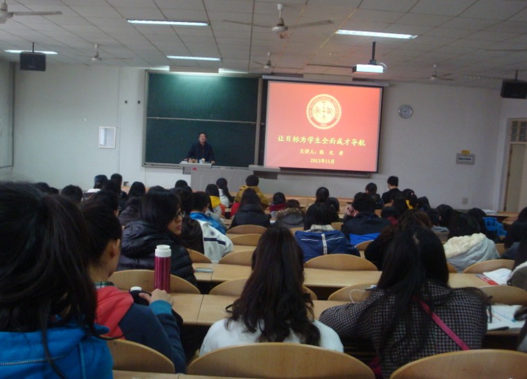 11月8日下午,外国语学院在教1-302教室举行目标教育讲座。学院党总支部书记张文孝给全体学生做了题为“让目标教育为学生全面成才导航”的报告。