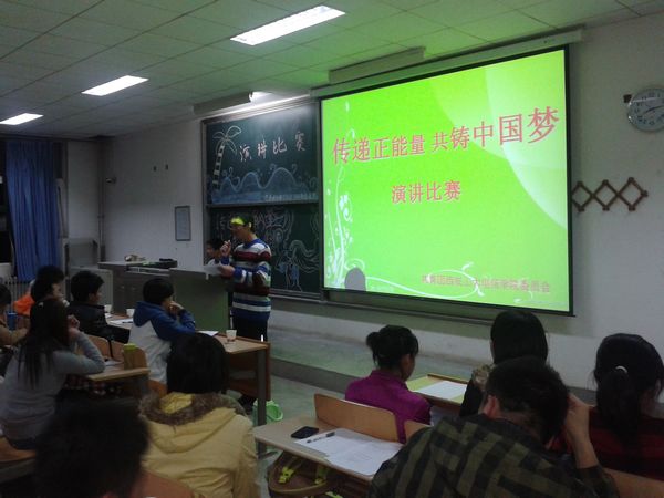 11月12日,电信学院在教2楼306室举办了主题为“传递正能量,共筑中国梦”演讲比赛,演讲比赛是学院承办的校级活动,而今天的比赛是学院的院内选拔赛。电信学院团委副书记王锐老师与会,共青团电信学院委员会各部部长担任评委,电信学院2013级学生观看比赛。