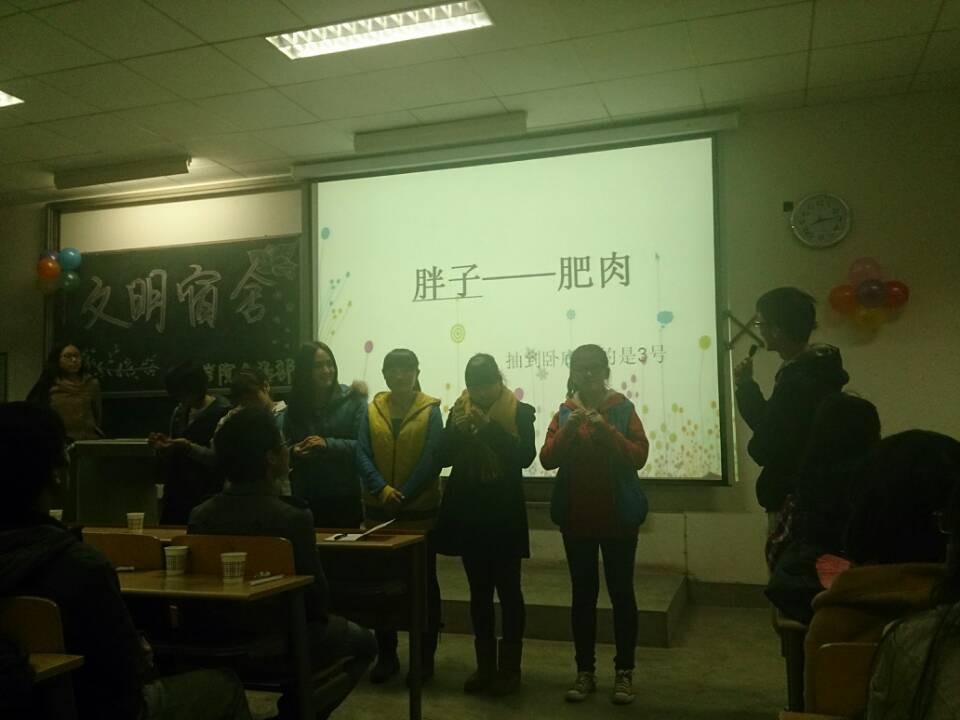 为进一步提高我院学生自我管理、自我教育,以及寝室同学之间的沟通、交流能力,倡导更好地寝室文化,促使寝室文化逐步向规范化方向发展,我院于2013年11月24日7:00于教2楼306举办“文明寝室”活动。参加本次活动的有:学生会副主席何军、张亮、张航,团委副书记严宁,秘书长张瑶,各部部长等以及全体大一同学。本活动的宗旨是:培养学生良好的生活习惯,营造文明的寝室环境以及展现我院学生的青春风采。