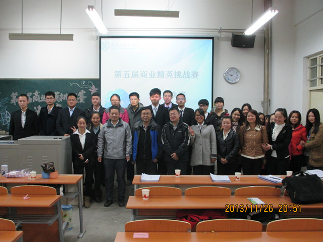 11月26日晚,第五届商业精英挑战赛决赛在教3-404如期举行,院管理系姬升良老师、唐可老师和张江涛老师担任评委,科协负责老师赵伟老师莅临比赛,共有6支队伍参与了最后对决。