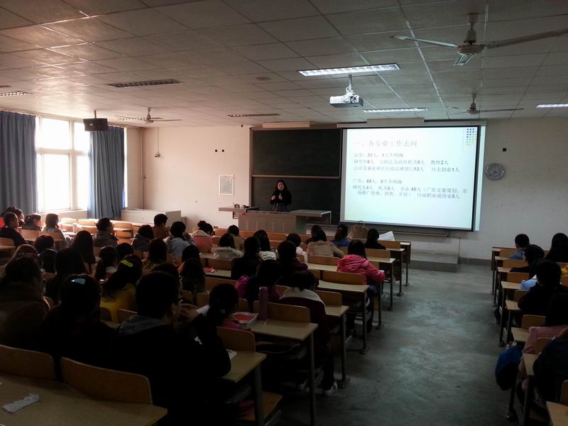 2013年11月19日下午15:30,人文学院2010级全体学生在教2-303参加了人文学院就业指导宣讲会。会上,雷晓青书记主要从各专业工作去向、先毕业再就业、十个话题送给大家、简历及面试四个方面,向同学们说明当下就业形势以及大家应如何积极准备去面对就业问题。