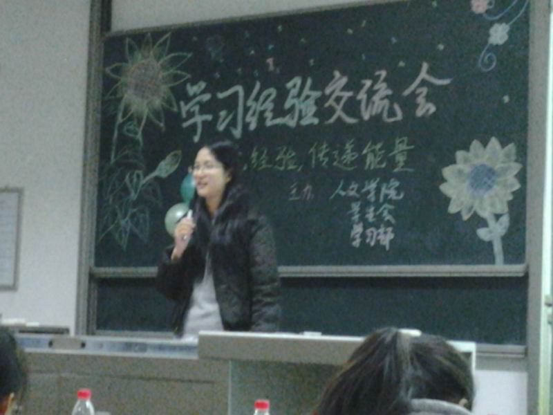 2013年11月27日下午,人文学院在教2-302举行了学习经验交流会,鉴于新生在入学后存在学习方法不正确,其他年级部分学生学习态度不端正、学业目标实现不理想等现象,会议邀请了人文学院十佳大学生靳杉杉及各专业学习突出的四位学生与参会学生一同分享学习经验及科学的学习方法。