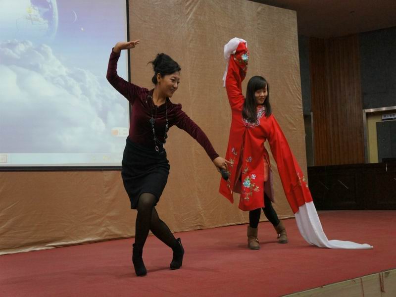 惠敏莉从秦腔的发展史、百年易俗社、我与易俗社三个方面讲述了西安易俗社的岁月历程,她与现场师生进行了热烈互动,并表演了《三滴血》、《柳河湾的新娘》等经典唱段。