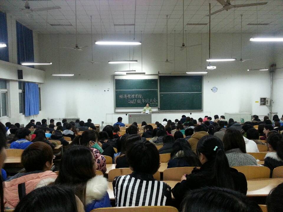 2月26日,经济管理学院2011级大会在教1-205教室召开,全面部署新学期的工作安排,本次会议由2011级导员张玉玲老师主持,2011级全体学生参会。