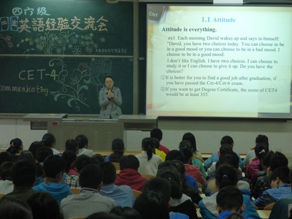 4月16日晚19时,电信学院在教1-101举办英语学习经验交流会,旨在解答同学们在英语学习方面上的问题以及对英语四六级考试进行考前指导和方法交流。电信学院2011级辅导员杨培培老师主讲,大一、大二学生代表参加此次交流会。
