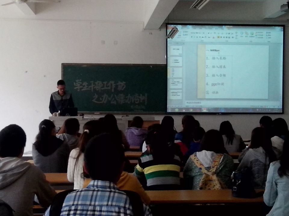 为提高学生干部能力,加强自身素质,4月23日,经管学院于4月23日在教5-210举办学生干部素质提升工作坊之办公自动化能力培训会,2012级全体班团干部参加培训会,培训由学院科协网络部承办。