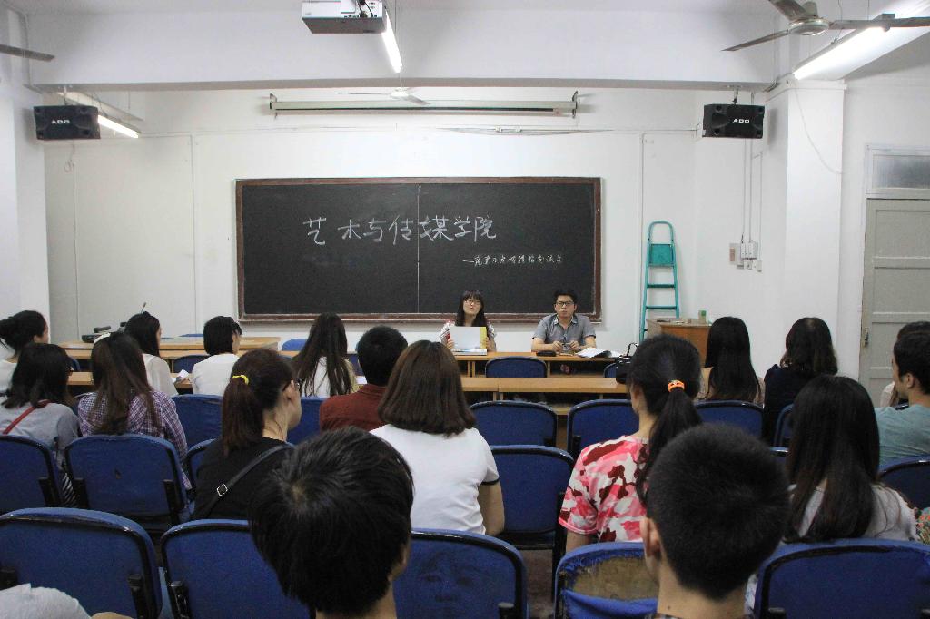 为解答2011级同学们在就业、考研方面的疑惑,帮助同学们进一步明确自身目标,艺术与传媒学院于2014年5月8日晚7:00在金花校区教3楼多媒体教室召开就业及考研经验交流大会。我院2011级全体同学参会。受邀的2位2010级优秀毕业生交流了就业及考研的成功经验。