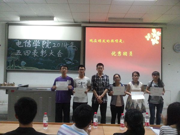 此次五四总结表彰大会是希望电信学院广大团员们能够记住五四,学习五四,对得起自己的青春,对得起学校乃至祖国的殷切期盼,并以此作为激励,不断努力,成长为一名优秀的共青团员。