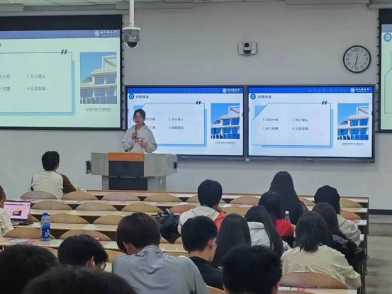 本次培训交流活动围绕短视频拍摄技巧及视频号运营,分别从前期准备、关键构图、注意事项、光线运用等四个方面及视频号的建立与运营两大板块展开。从短视频的前期内容构思到剪辑要点,层层深入、系统讲解,为同学们带来丰富、详细的培训交流内容。现场氛围热烈,学生互动积极。