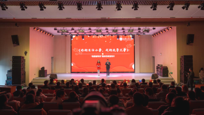 在我校辅导员集体形象宣传片《你的生活小事,我的头等大事》的温情画面中,联欢会拉开序幕。该视频由党委学生工作部网络思政中心师生团队原创制作,努力以真实镜头展现辅导员日常工作场景,受到广大师生好评,为联欢会增添了温暖友爱的氛围。