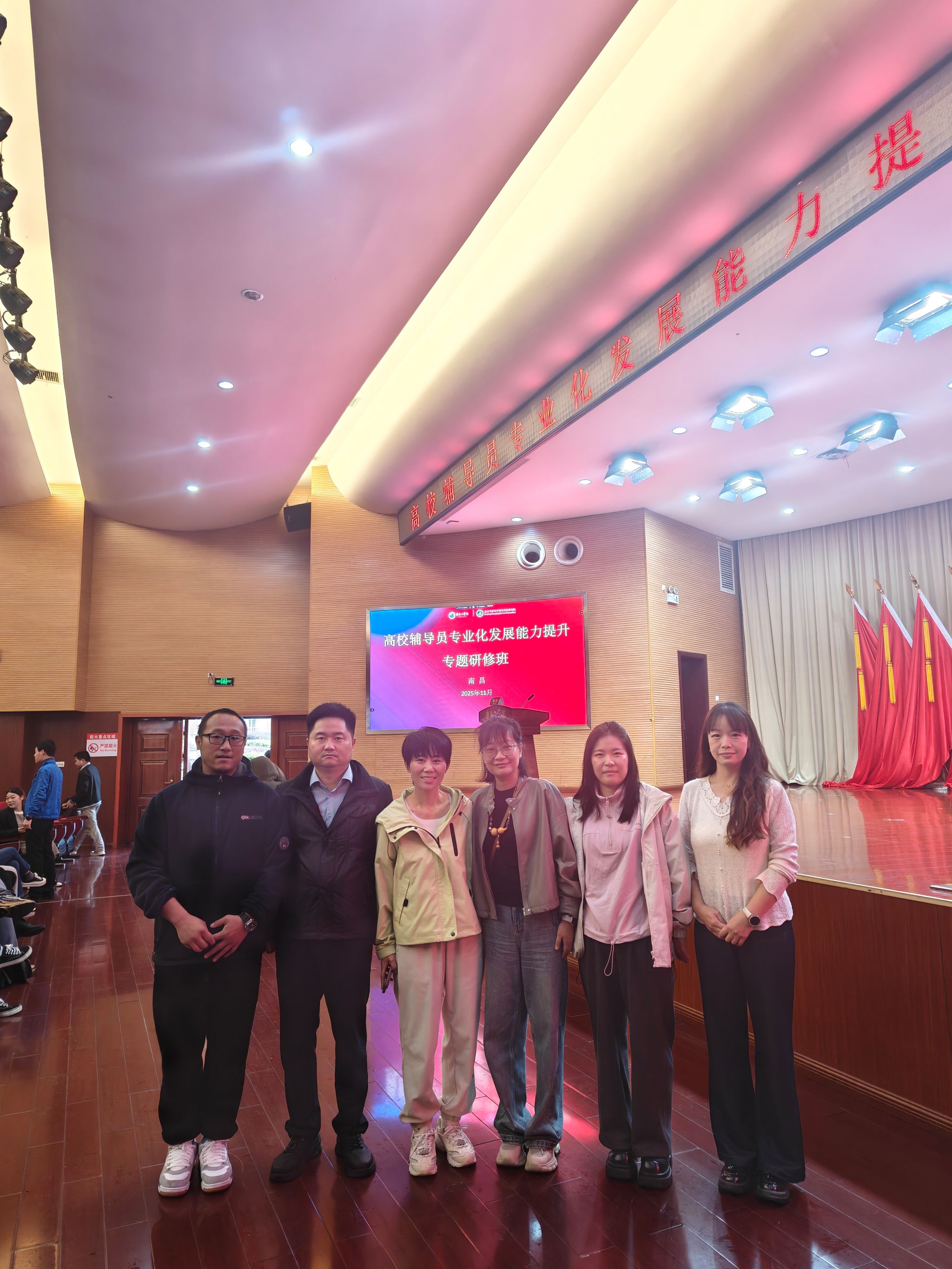 为深化立德树人工作任务,提升辅导员思想政治教育的实效性与时代适应性,11月7日-10日,学工部组织辅导员何鹏程、王娟等一行6人赴南昌市参加辅导员专业化发展能力提升专题研修班。